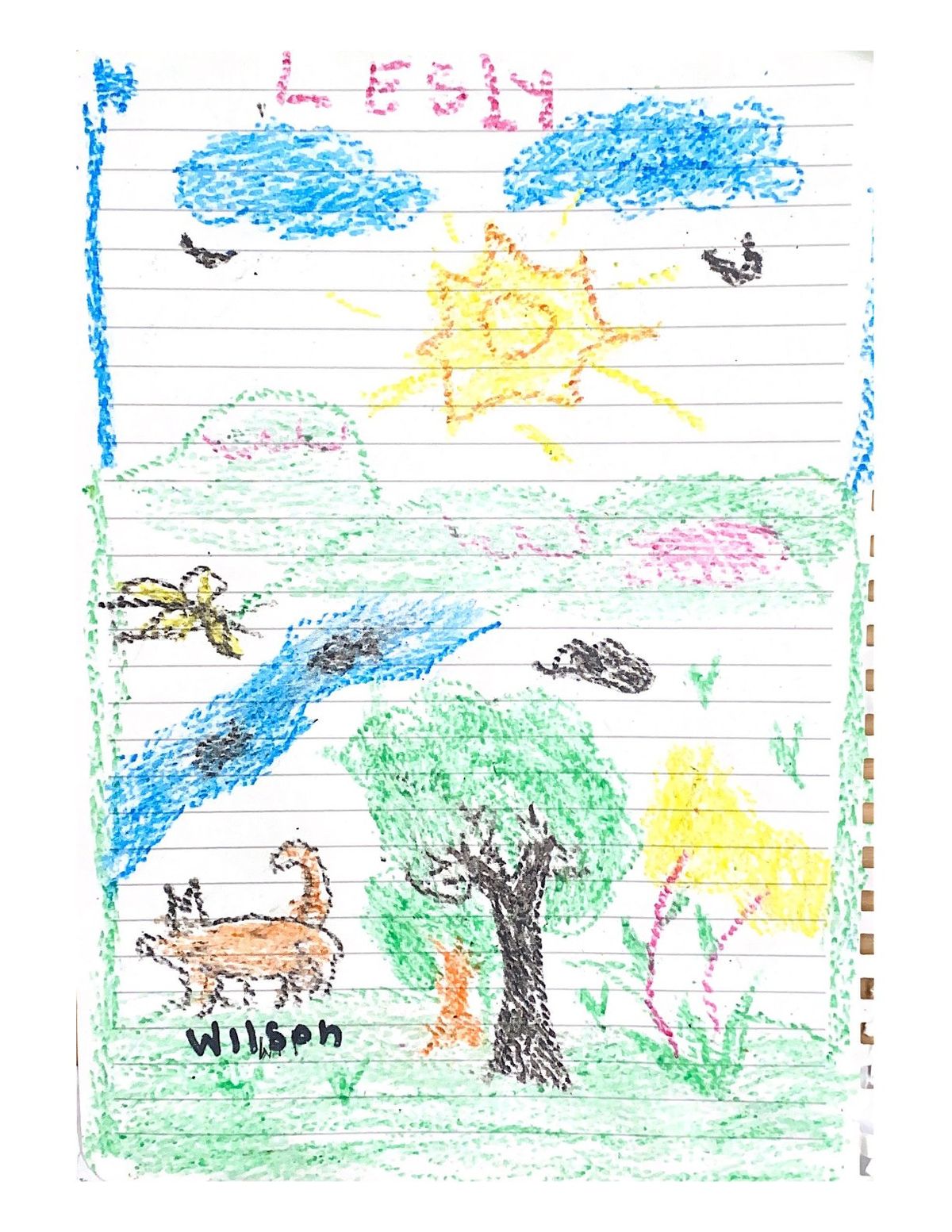 Según el relato de Lesly, Wilson estuvo con ellos durante varios días, brindándoles compañía, jugando con ellos y guiándolos en la selva. Sin embargo, el canino comenzó a perder peso y siempre parecía estar buscando a alguien. Su presencia fue fundamental para los cuatro menores. De hecho, las niñas mayores realizaron dos dibujos en honor a Wilson, agradeciéndole por haber estado a su lado.