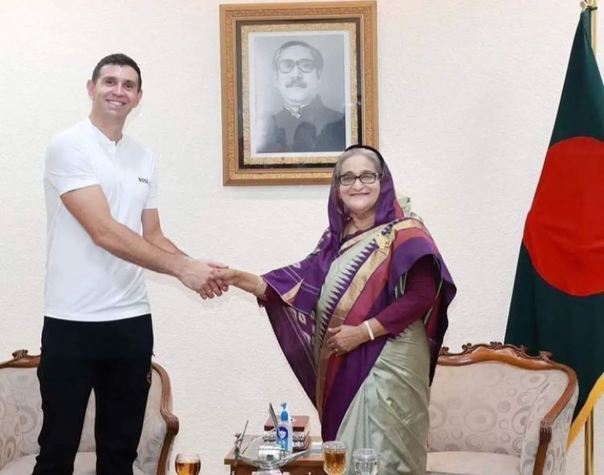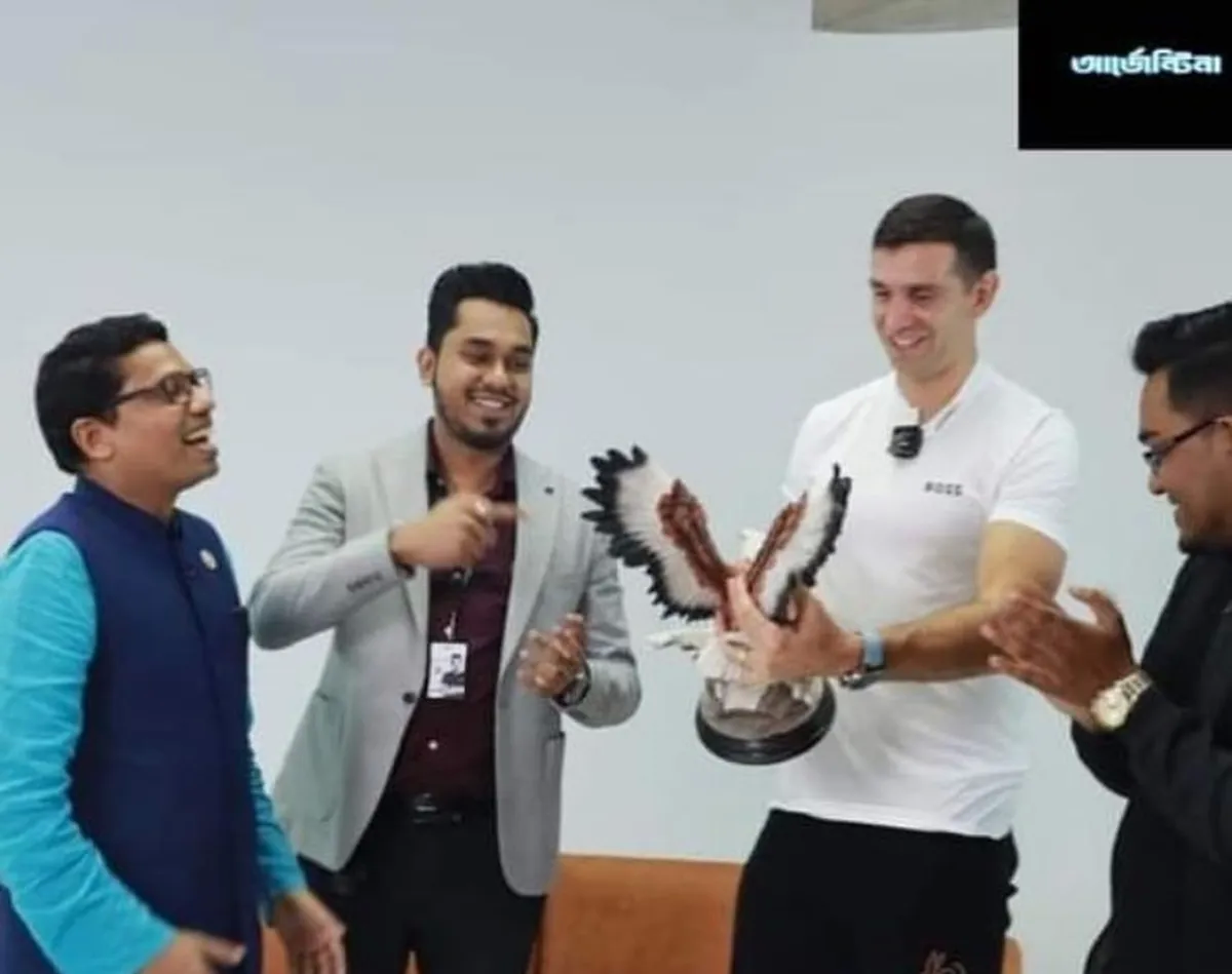 Emiliano "Dibu" Martínez, destacado arquero de la selección argentina y del Aston Villa, se encuentra inmerso en una gira de corta duración por el Sur de Asia, y uno de sus destinos fue Bangladesh, un país que demostró una gran devoción por los triunfos del equipo albiceleste en el último mundial.