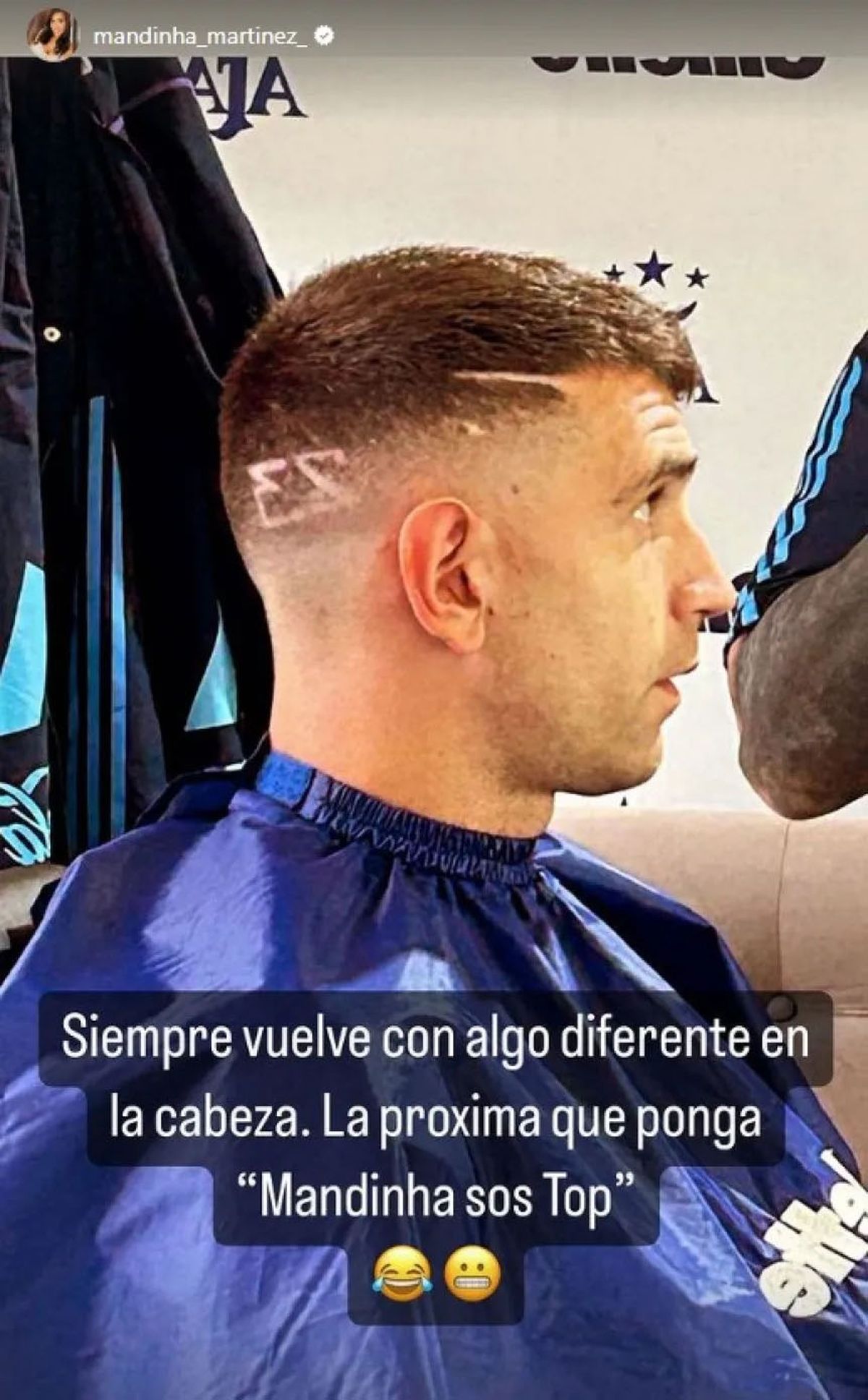 En su cuenta de Instagram, Mandinha, la pareja del portero de la Albiceleste, observó el nuevo look de su esposo, que se ha vuelto una tradición en sus recientes apariciones con el equipo nacional. Recordemos que en el Mundial de Qatar 2022, Dibu Martínez llevó la bandera argentina en su cabello después de la fase de grupos, y en los primeros amistosos como campeón del mundo, añadió una estrella gigante, pintada de celeste, representando dos tercios de la bandera.