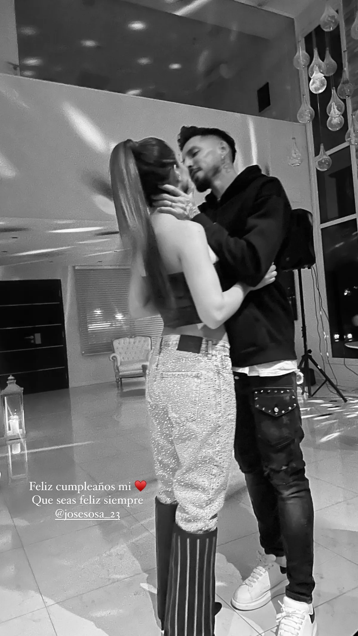 “Feliz cumpleaños, mi amor. Que seas feliz siempre”, escribió la modelo en una historia de Instagram sobre una foto en blanco y negro, en la que se los ve dándose un beso.