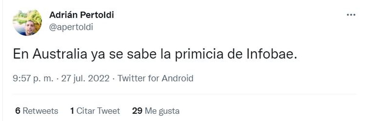 Infobae anunció a las 21 horas una primicia mundial con una cuenta regresiva. "Exclusivo, en tres horas primicia mundial en Infobae". Luego, repitió el mensaje cuando restaban dos hora y en la hora final.