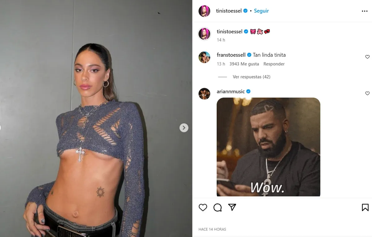 Después de un tiempo de ausencia en las redes sociales tras el anuncio de separación del futbolista, Tini Stoessel compartió una serie de fotos en Instagram donde se la ve súper sensual luciendo un crop top calado de manga larga y con la panza al descubierto.