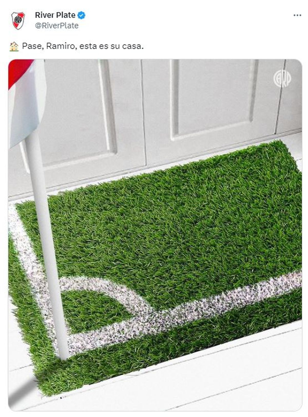 La cuenta de Twitter de River publicó: "Pase, Ramiro, esta es su casa", acompañado de una imagen de un banderín de córner pegado a una puerta. Esta broma fue contenida por los fanáticos de River en los comentarios.