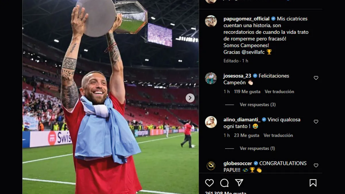 "Mis cicatrices cuentan una historia, son recordatorios de cuando la vida trató de romperme, pero fracasó", expresó el Papu en una publicación en Instagram. A pesar de sus palabras, ninguno de sus compañeros, incluyendo a los compatriotas argentinos Marcos Acuña, Gonzalo Montiel, Erik Lamela y Lucas Ocampos, le respondió o interactuó con él.
