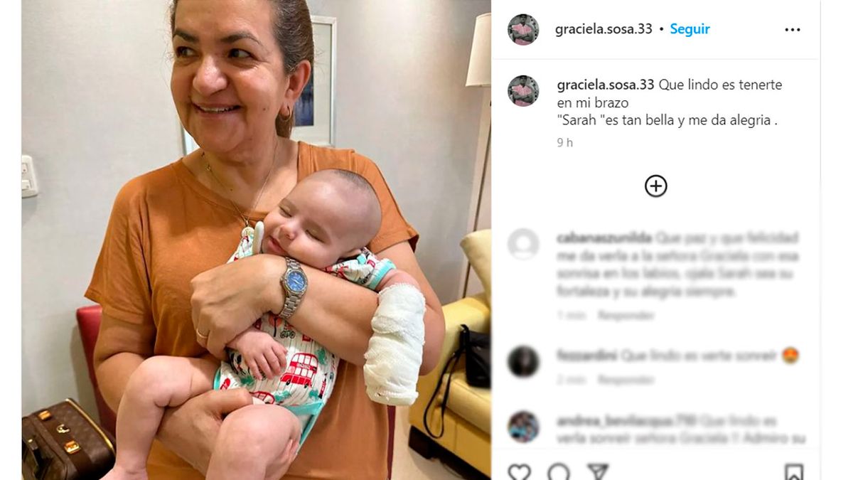 “Que lindo es tenerte en mi brazo. Sarah, es tan bella y me da alegría”, escribió Graciela junto a la foto en la que se la ve con la niña en brazos. Graciela y Silvino generaron un profundo vínculo con Burlando y su familia durante estos tres años que estuvo al frente de la causa de su hijo, asesinado a golpes por 8 rugbiers en Villa Gesell.
