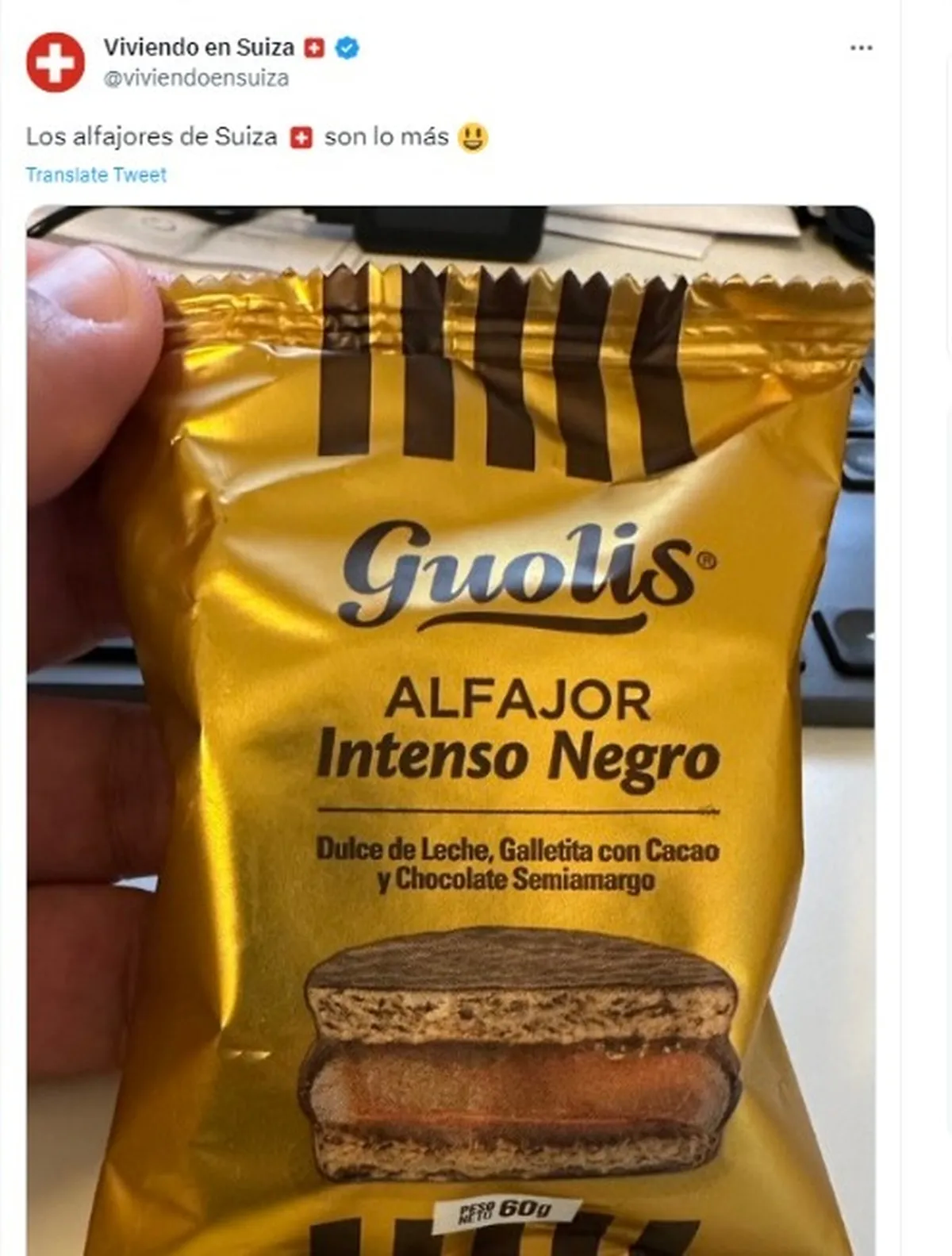 Todo empezó cuando el joven compartió una imagen en Suiza con un alfajor de la competencia, a lo que otro usuario de Twitter le respondió con una imagen del Guaymallén disfrutándolo en España.