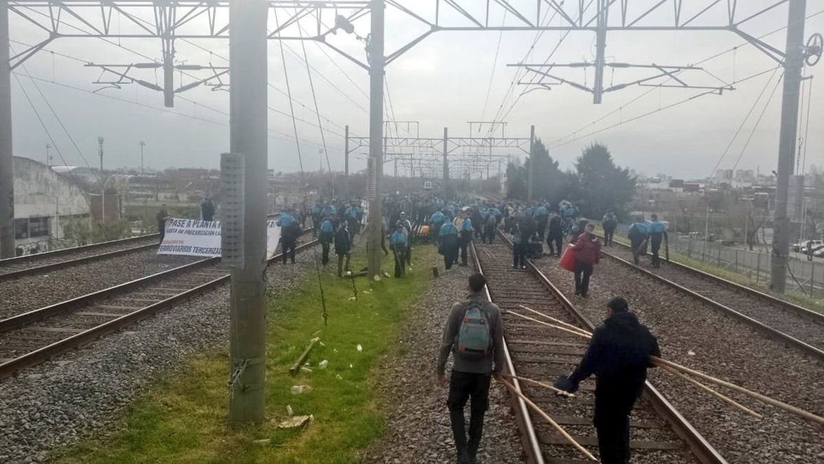 Se trata de empleados tercerizados de la empresa MCM, que prestan servicios de seguridad en el Ferrocarril General Roca. Cortan las vías a la altura de la estación Darío Santillán y Maximiliano Kosteki (ex Avellaneda).